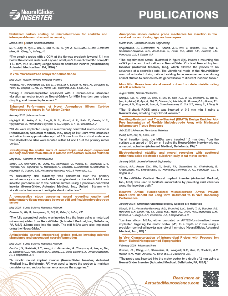 "Just as American Tower built the critical infrastructure that powered the mobile phone revolution, I see Actuated Medical’s NeuralGlider technology as the foundational platform that enables all players in the Neural Probe Space to safely and effectively access the brain for improved outcomes."